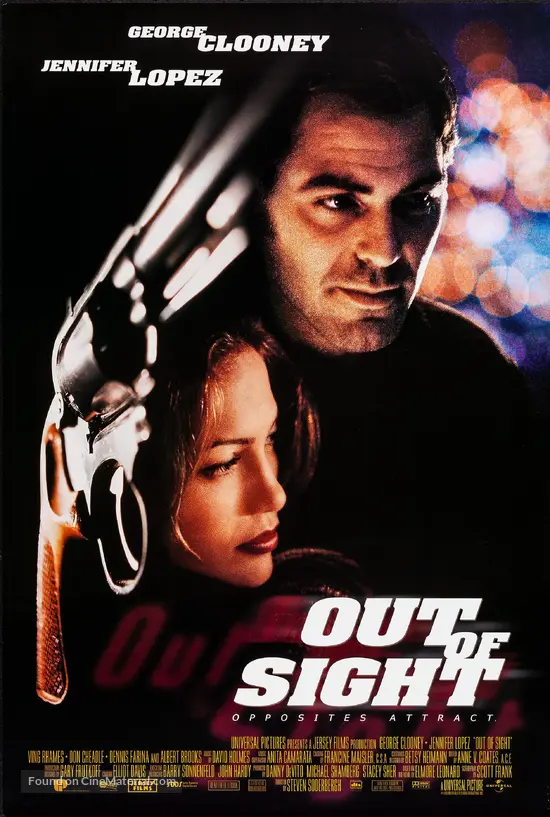Out of Sight is a 1998 American crime comedy film directed by Steven Soderbergh and written by Scott Frank, adapted from Elmore Leonard's 1996 novel of the same name.The first of several collaborations between Soderbergh and actor George Clooney, it was released on June 26, 1998.. The film stars Clooney and Jennifer Lopez, co-starring Ving Rhames, Don Cheadle, Dennis Farina, Nancy Allen, Steve.
