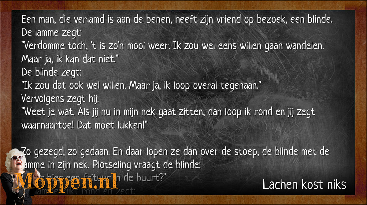 De lamme leidt de blinde. Public group. ·. 22.1K members. Join group. nieuws met humor. Dus ga niet stressen, maar op het eind berust alles op waarheid. af en toe een kiek met me post.