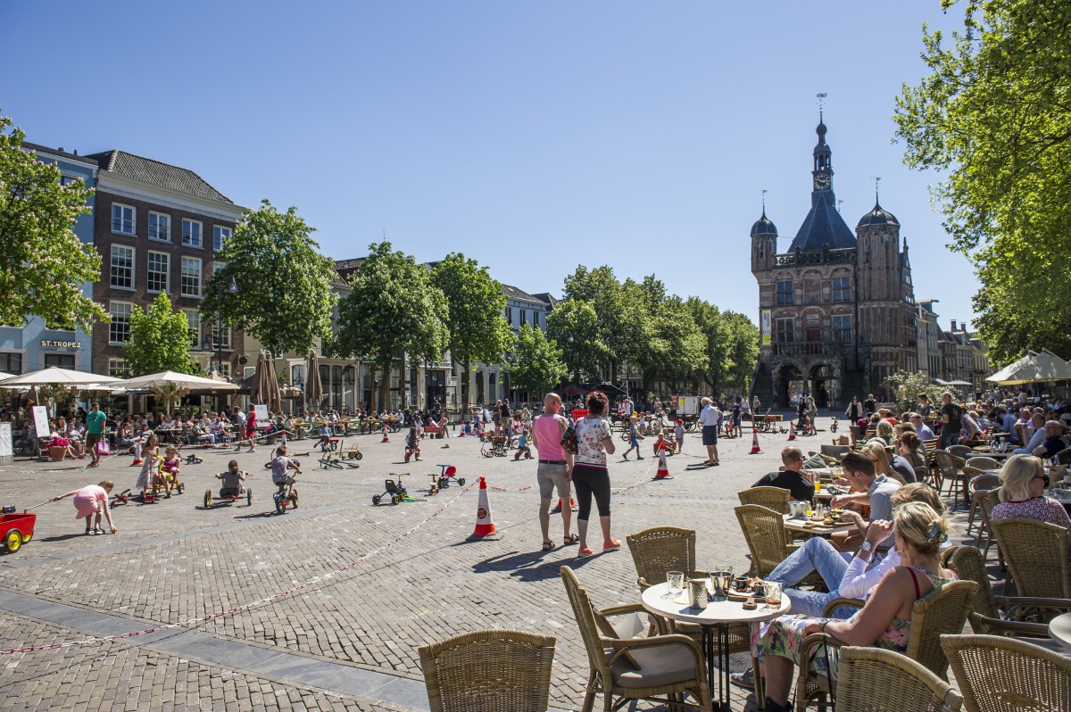 Opeens staat er weer een terras op de Brink in Deventer is dat niet een week te vroeg? Foto