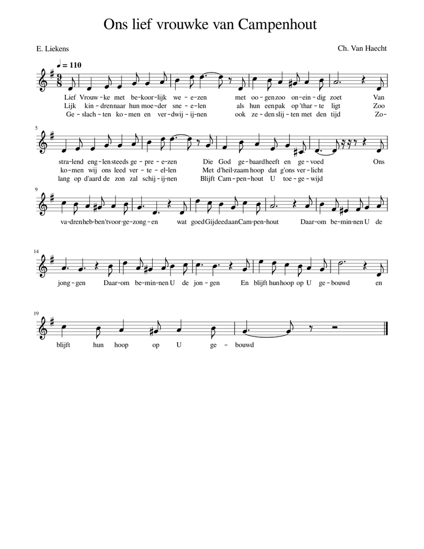 Ons lief vrouwke van Campenhout Sheet music for Piano (Solo)