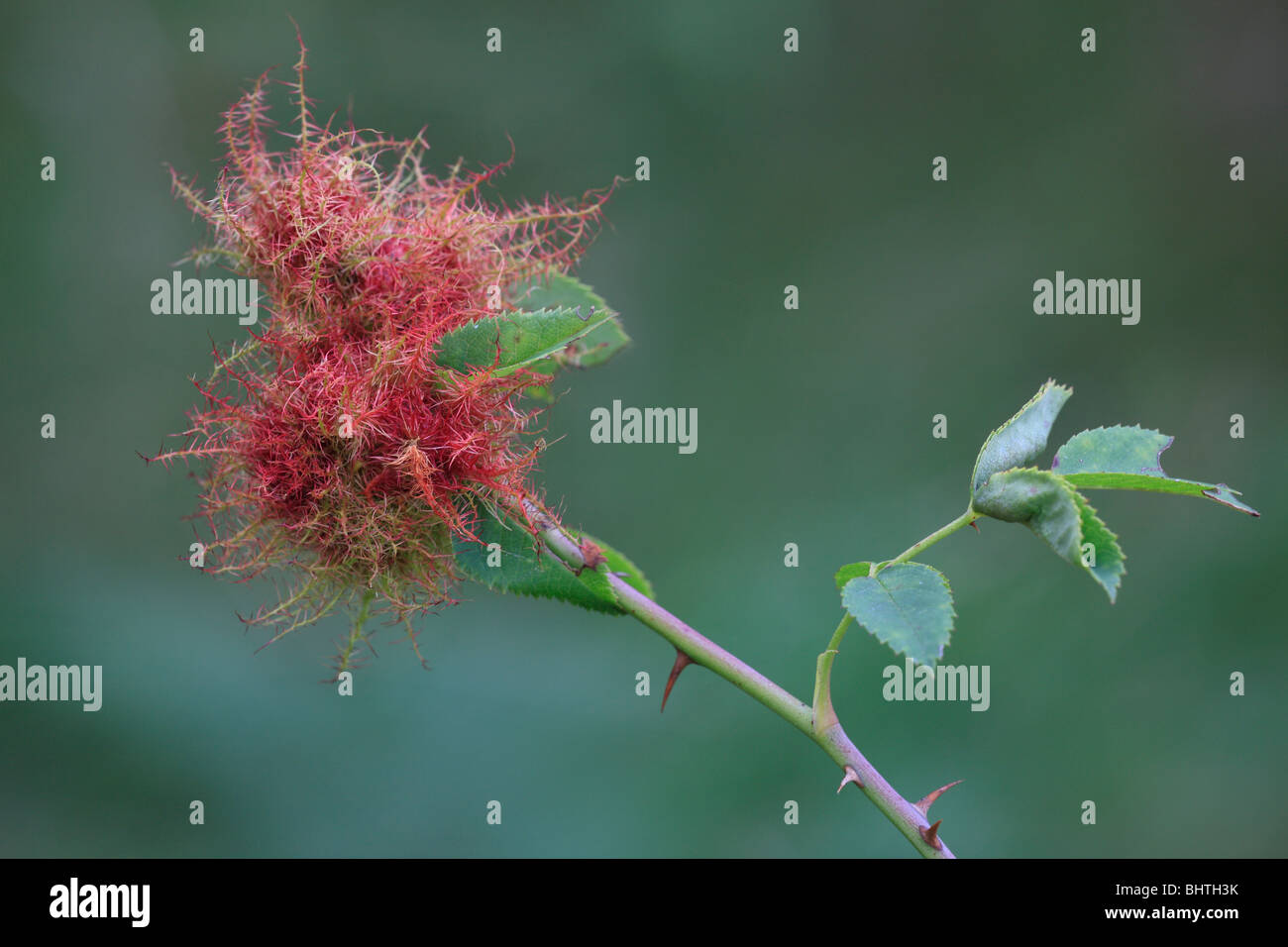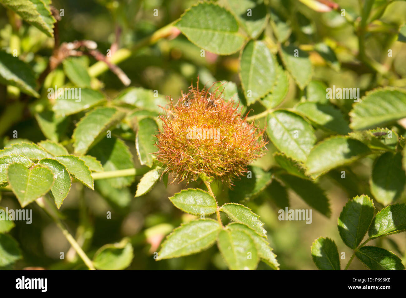 Closeup of a Bedeguar Gall on a Wild Rose, Caused by a Gall Wasp Diplolepis Rosae Stock Photo