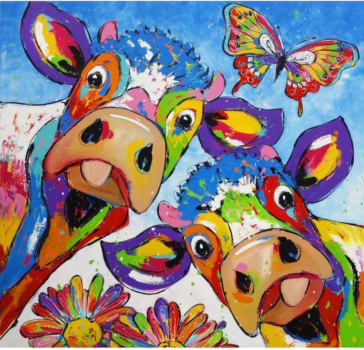 Schilderen op Nummer Set Volwassenen 40 x 40 cm Dieren Koeien met Vlinder