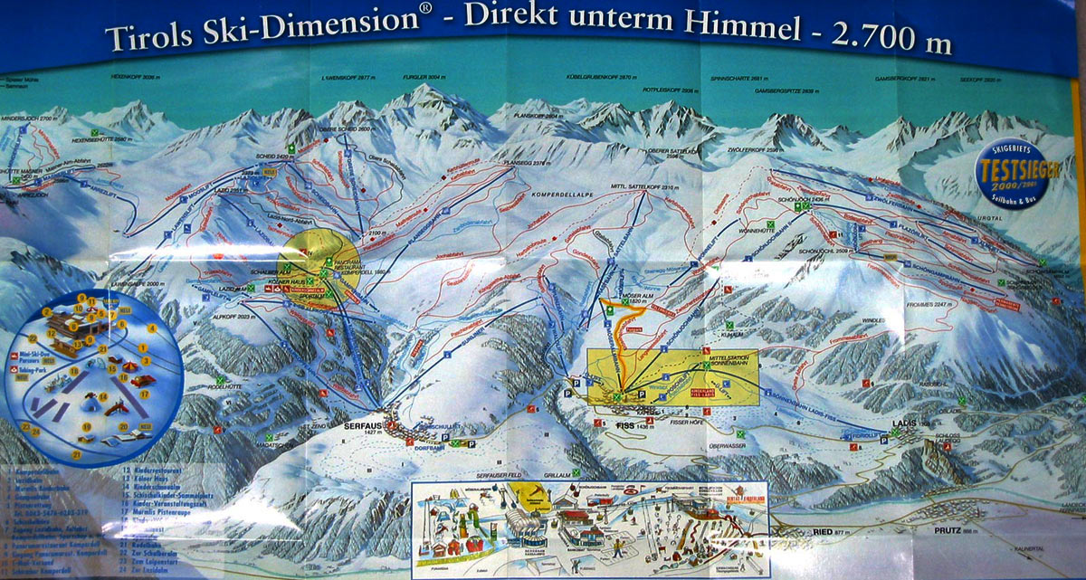 Ski Dimension, Serfaus, Fiss, Ladis Ski Trail Map Free Download