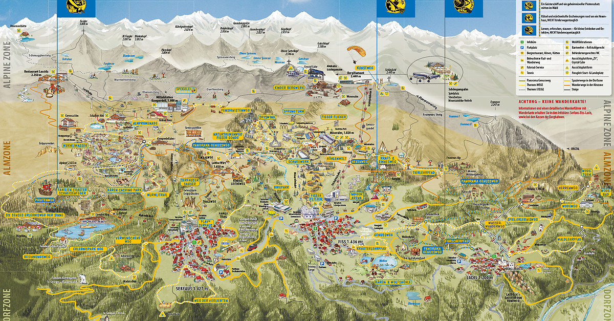 Get an overview of the ski resort with our interactive piste map: All slopes, freeride routes, fun areas, mountain restaurants and more are indicated on the map. table of content. arrival. departure. adults children. edit age. age of the children at arrival:. Without Serfaus-Fiss-Ladis Guest Card