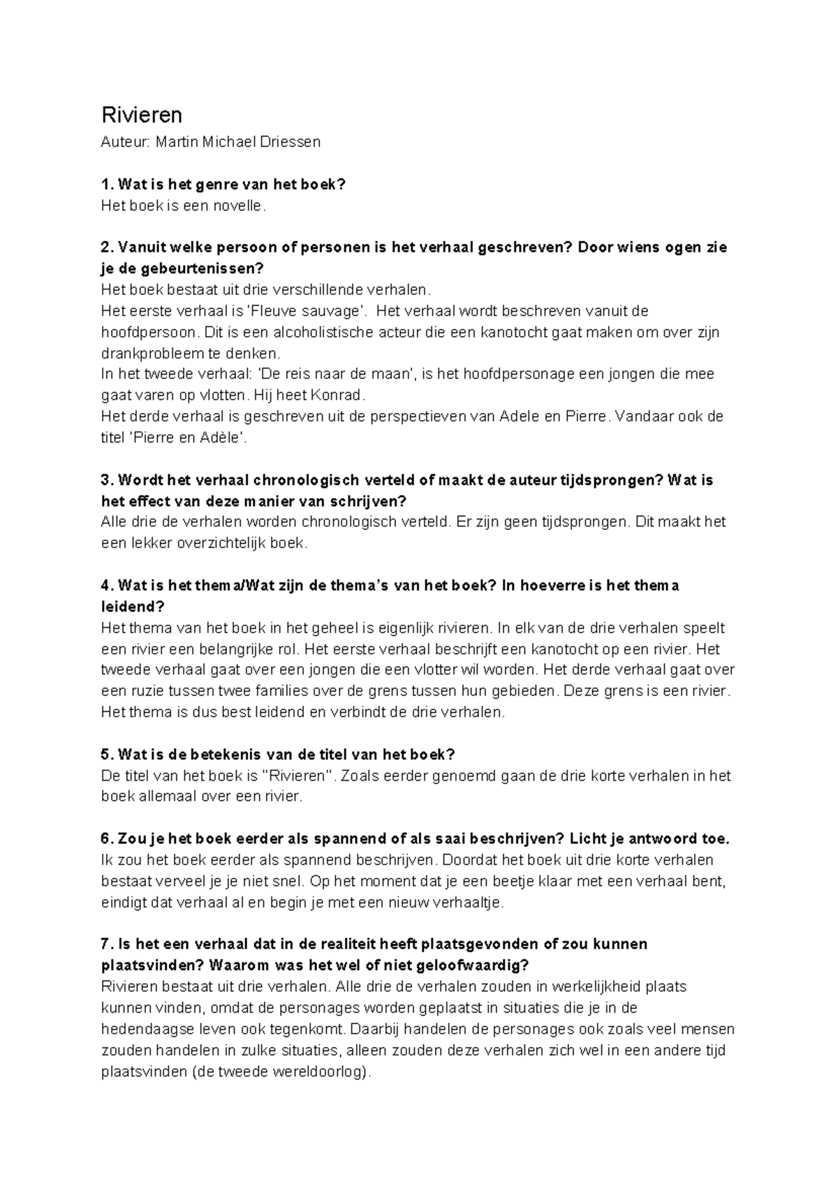 Boekverslag rivieren Rivieren Auteur Martin Michael Driessen Wat is het genre van het boek